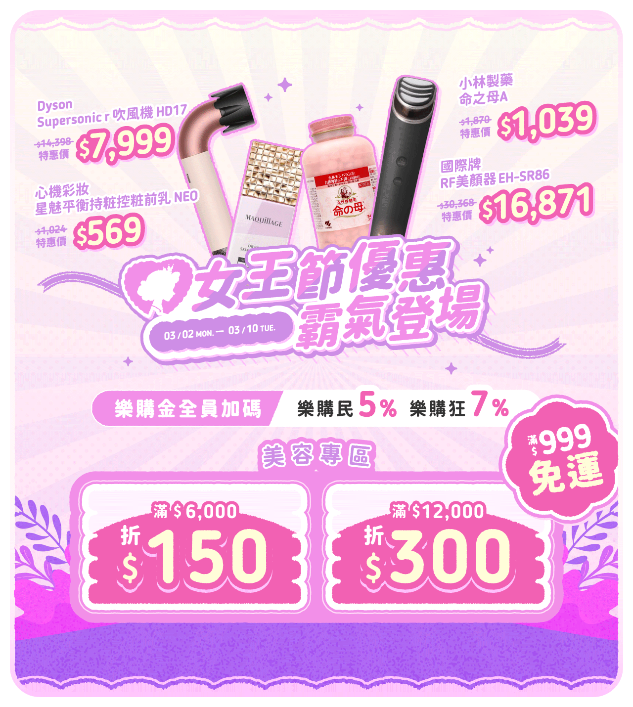 美容專區滿$6,000折$150;滿$12,000折$300🫶