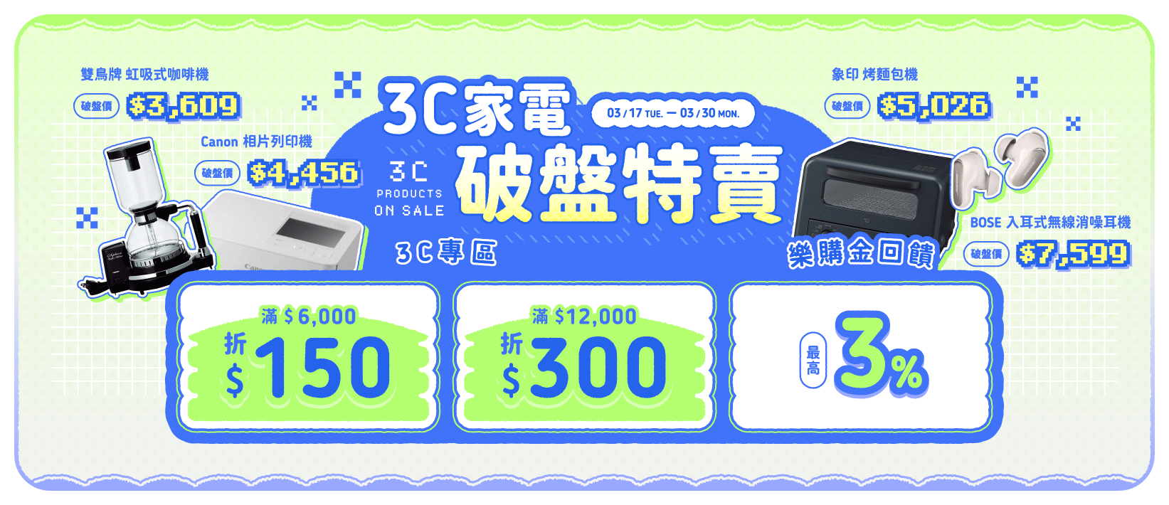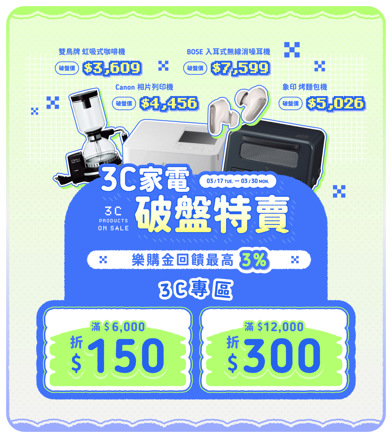 3C專區滿$6,000折$150;滿$12,000折$300🫶