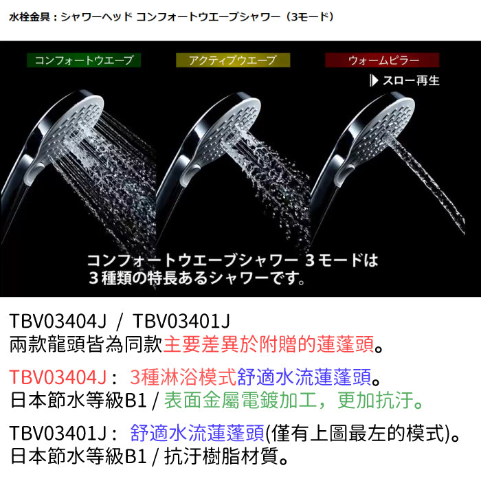 TBV03404J vs TBV03401J:主要差在附贈的蓮蓬頭