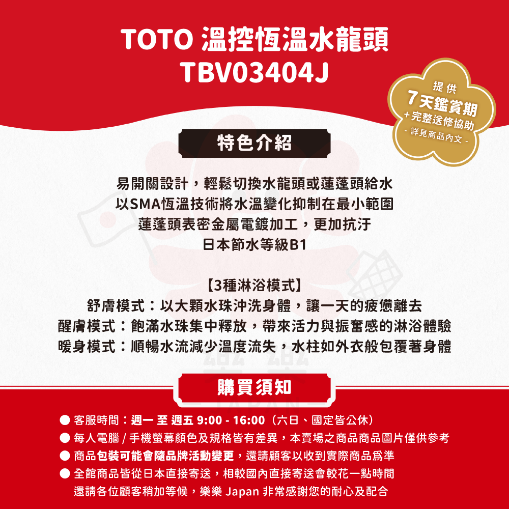 日本,TOTO,東陶,衛浴水龍頭,浴室水龍頭,雙孔水龍頭,感應式水龍頭,冷熱雙控水龍頭,旋轉水龍頭,高壓水龍頭,環保節水水龍頭,不鏽鋼水龍頭,牆壁式水龍頭,壁式水龍頭,水龍頭,恆溫水龍頭,溫控水龍頭,冷熱混合龍頭,蓮蓬頭,安全防燙設計,安心觸,安全鎖,舒膚模式,醒膚模式,暖身模式,易開關設計,裝潢,五金,節水,省水,電鍍,抗汙樹脂材質,抗菌材質,方便清潔,控水,水流調節,Air In,現代美學設計,美觀,耐用,SMA控溫技術,淋浴控溫技術,智能恆溫,自動溫度感應,保持水溫穩定,淋浴花灑,TBV03401J1,TBV03401J,TBV03404J,淋浴設備,淋浴系統,日本原裝,蓮蓬頭套組