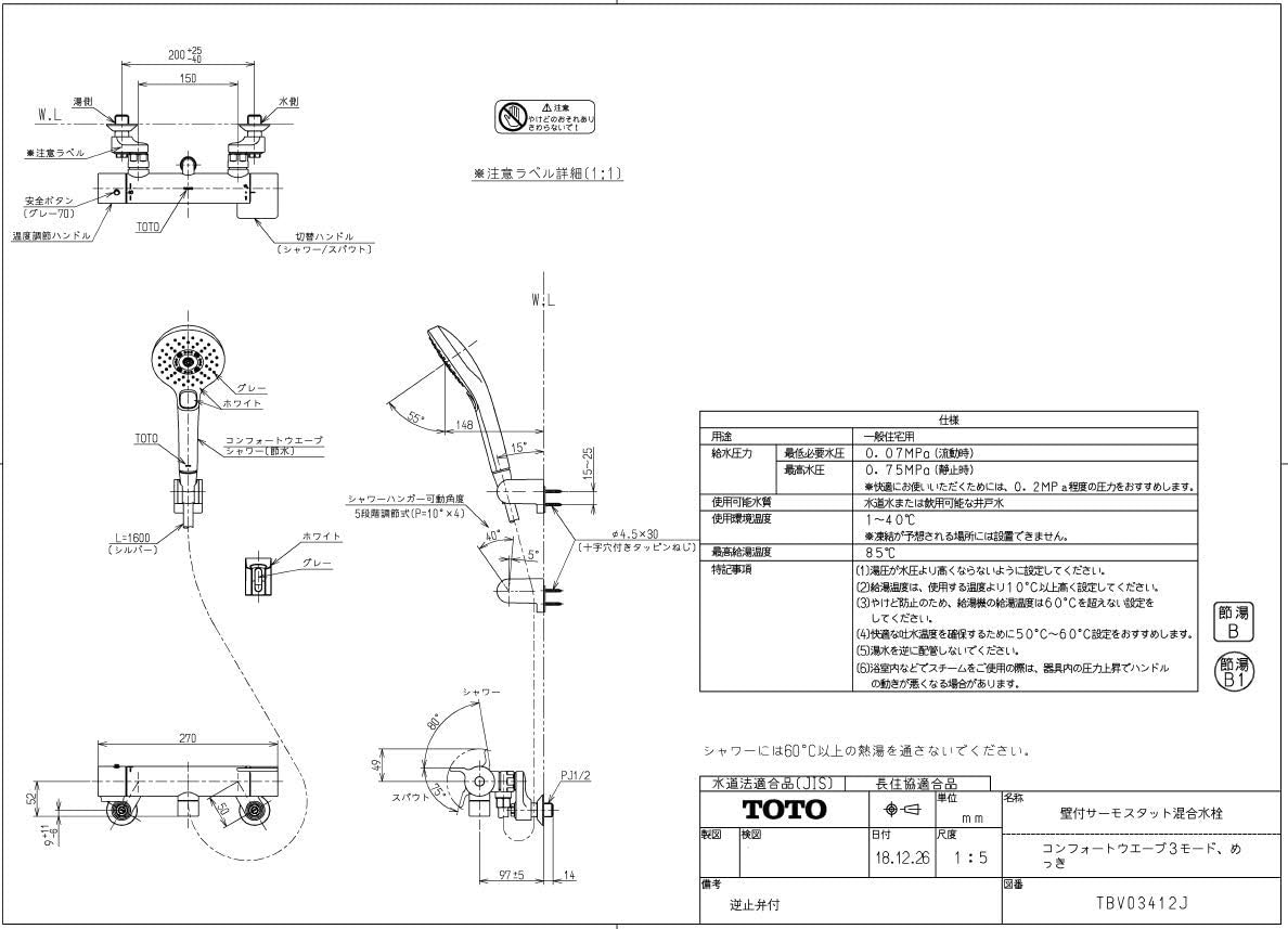 TOTO,TBV03412J,溫控恆溫水龍頭,SMA恆溫,電鍍金屬蓮蓬頭,三段淋浴模式,恆溫水龍頭,東陶