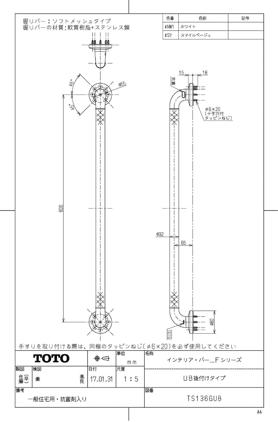 日本,TOTO,東陶,F系列,I字,一字,安全,安全輔具,老人,小孩,孩童,扶手,穩固,無障礙,防滑,防摔,浴室配件,洗手台配件,衛浴用品,浴缸,馬桶,衛浴,廁所,裝潢,整修,裝修,TS136GU,TS136GU5,TS136GU8,#NW1,50cm,80cm