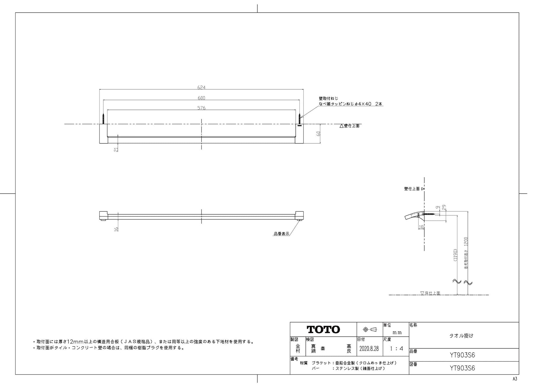 商品材質:【毛巾架本體】不鏽鋼、【固定底座】鋅合金
