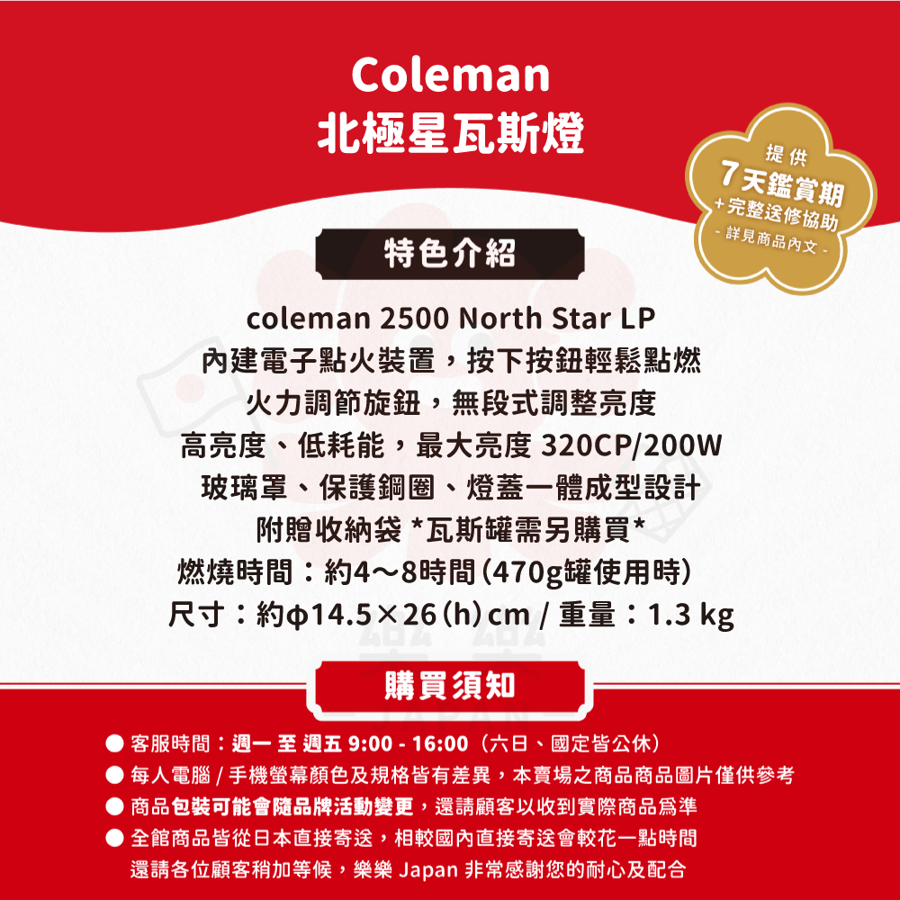 Coleman,2500,North,Star,LP,北極星瓦斯燈,露營燈,瓦斯燭燈,美學燈,氣氛燈,汽化燈,2000015521,2000015520,CM-5521J,CM-5520J