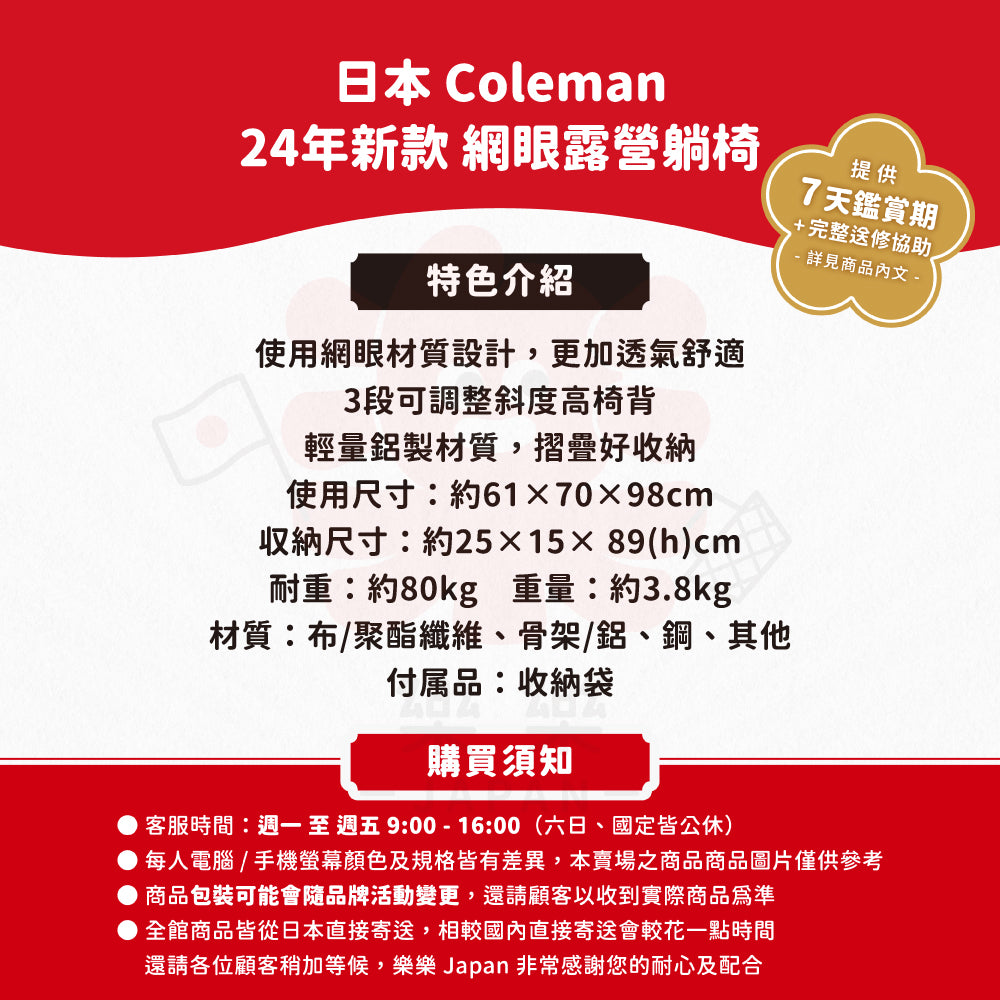 Coleman,24年新款,網眼LAY躺椅,露營躺椅,巨川椅,CM-26744,CM-26745,219085,網眼,2206793,露營椅,米色