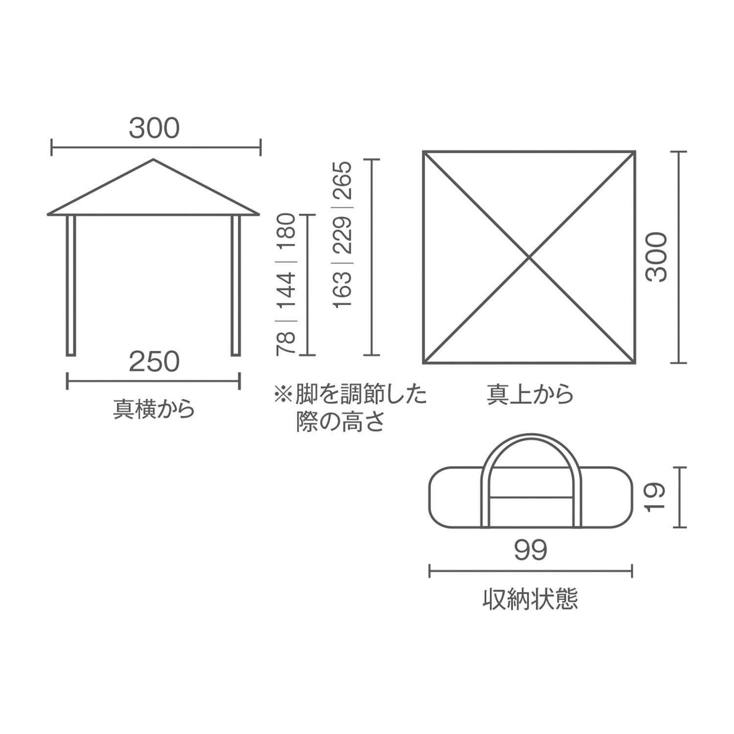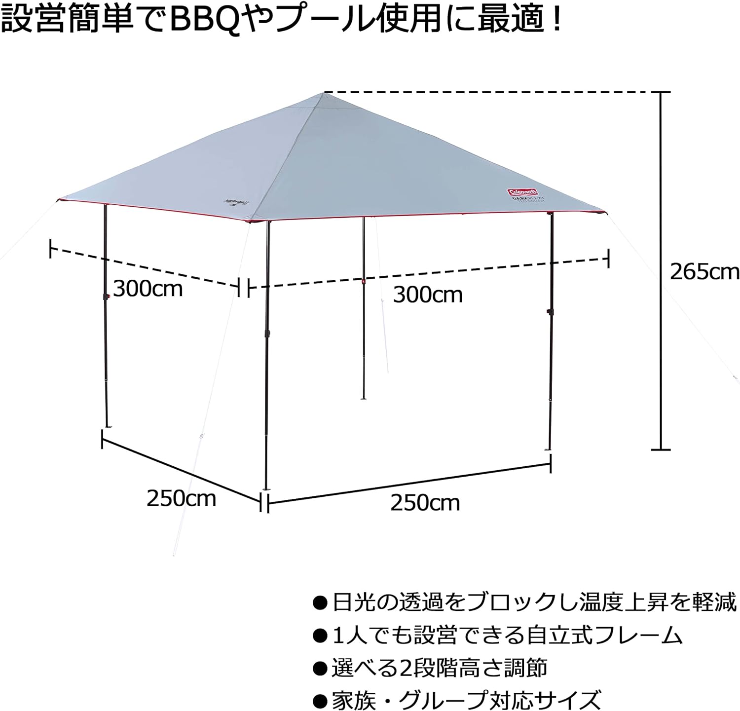 使用尺寸:外帳-約300×300×265(h)cm、營柱長寬-約250×250cm