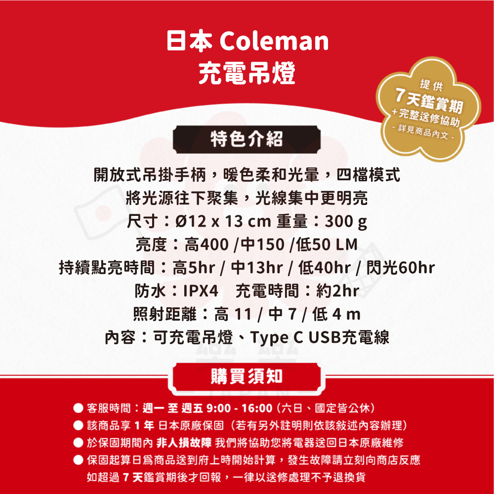 日本,Coleman,22年新款,充電吊燈,CM-38858,露營吊燈,帳篷掛燈,USB吊掛燈,復古營燈,LED氣氛燈