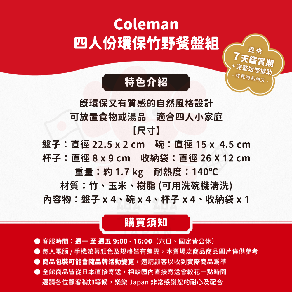 Coleman,四人份環保餐具,竹野餐盤,餐具組,碗,杯子,盤子,野炊,野餐,露營,有機餐盤組,戶外野炊餐具,CM-38927