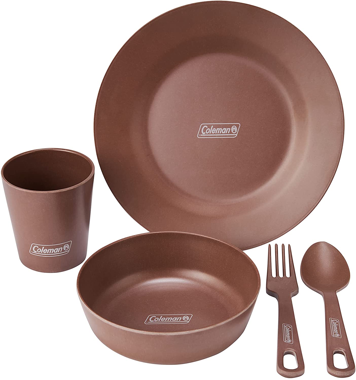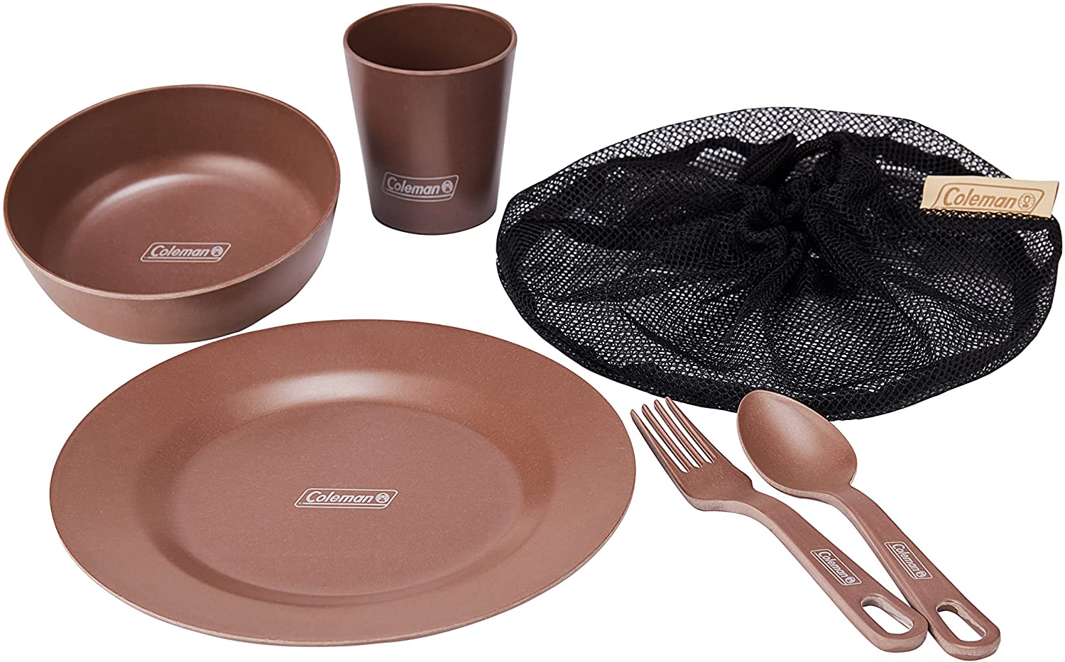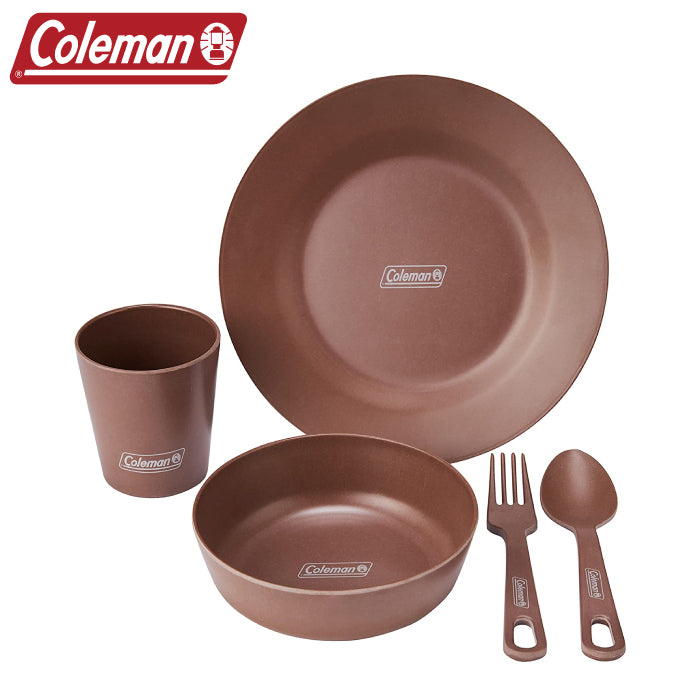 Coleman,CM-38931,2000038931,單人有機餐具組,自然系餐盤組,碗,杯子,湯匙,叉子,環保,植物材質,再生能源,野餐,露營,收納袋,吊掛晾乾,竹,玉米,美耐皿,竹野餐盤