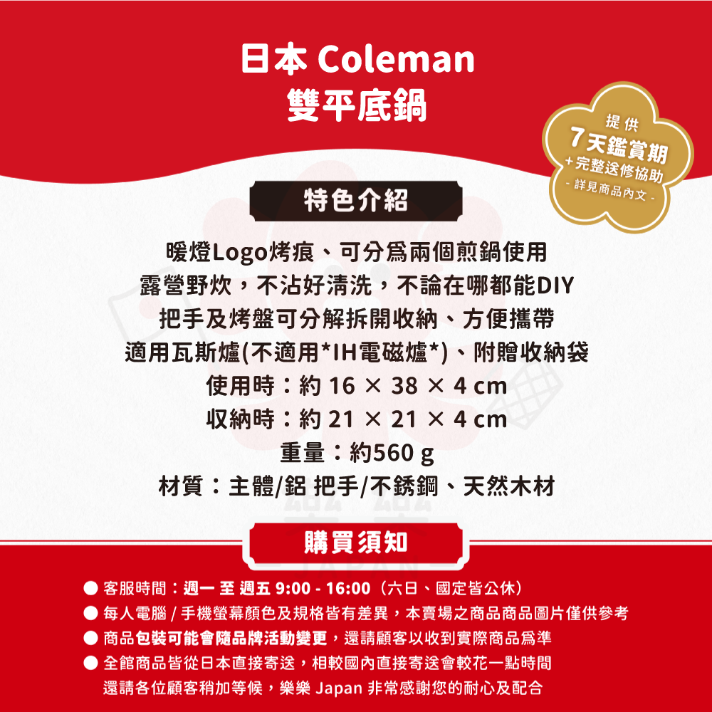 ※詳細說明請見樂樂Japan 購物保障・保固須知