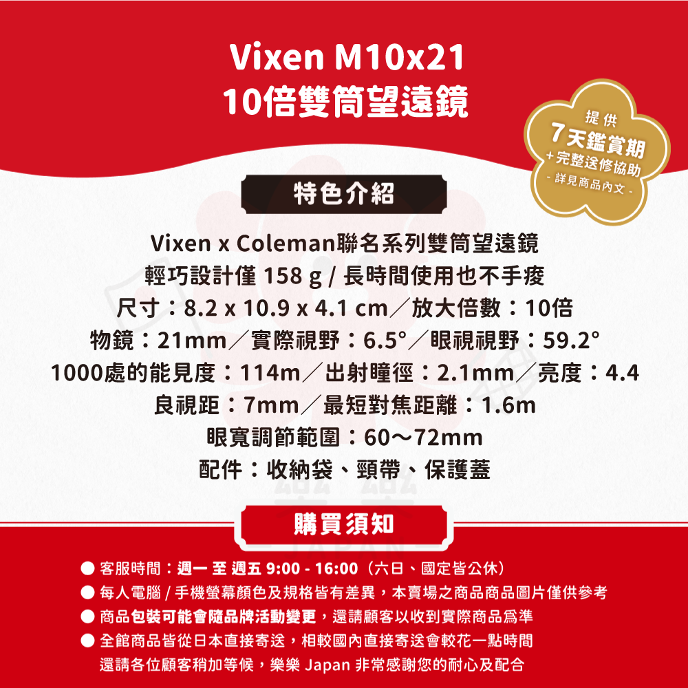 日本,Vixen,x,Coleman聯名雙筒望遠鏡,M10×21,10倍,輕便型,演唱會,音樂劇,戲劇觀賞,戶外活動