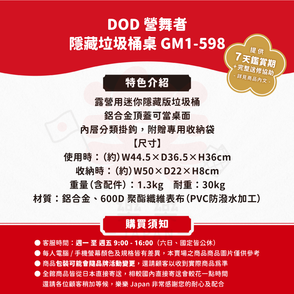 DOD,營舞者,DOPPELGANGER,GM1-598-BK,隱形,X,隱藏垃圾桶,垃圾桶,露營桌,收納,置物