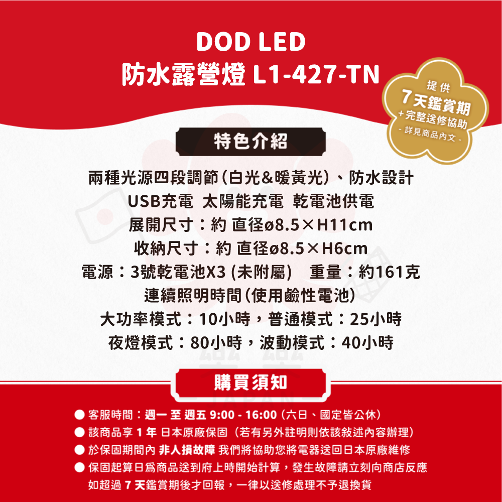 DOD,營舞者,LED輕量露營燈,L1-427-TN,可折疊,照明設備,防水,露營燈,停電,防災用,太陽能充電,戶外用品