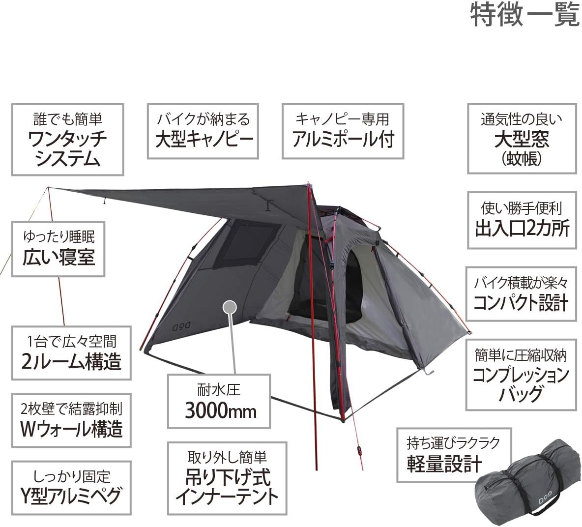 日本,DOD,營舞者,機車輕裝快速帳,戶外露營,一鍵式帳,T2-466,露營,野營,機車旅行,重機,帳篷,前庭