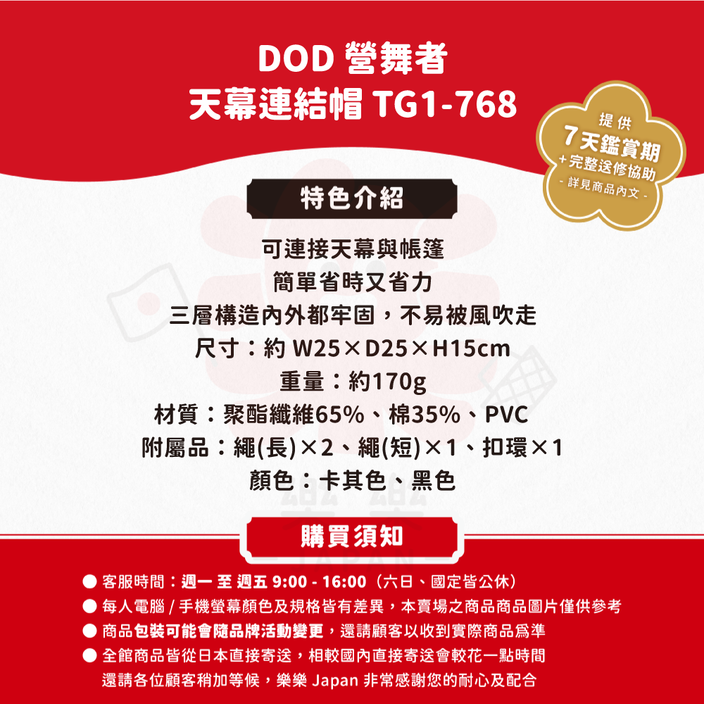 DOD,營舞者,印地安天幕連結帽,TG1-768,BK,TN,天幕連結帽,露營,帳篷,可連接天幕
