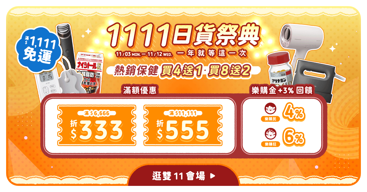 雙11下單好時機✨全館滿$6,666折$333、滿$11,111折$555