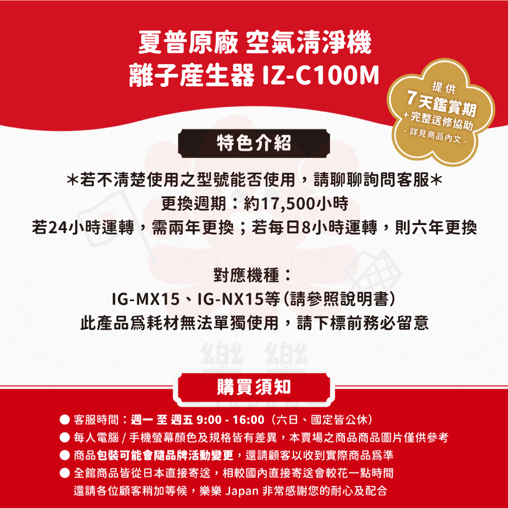 日本,夏普,IZ-C100M,空氣清淨機,負離子,離子產生器,IG-MX15,IG-NX15,車用空氣清淨機,原廠耗材