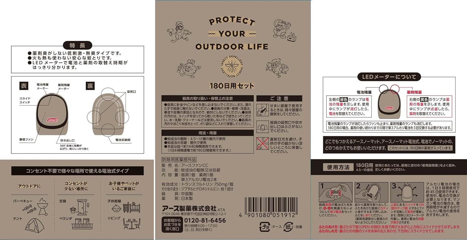 Coleman,EARTH製藥,電池式蚊香器,180日,無臭,無噪音,電蚊香,驅蚊器,驅蚊,防蟲,防蚊,露營,野餐,戶外