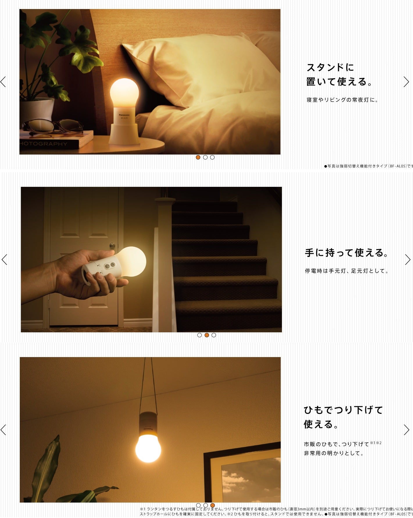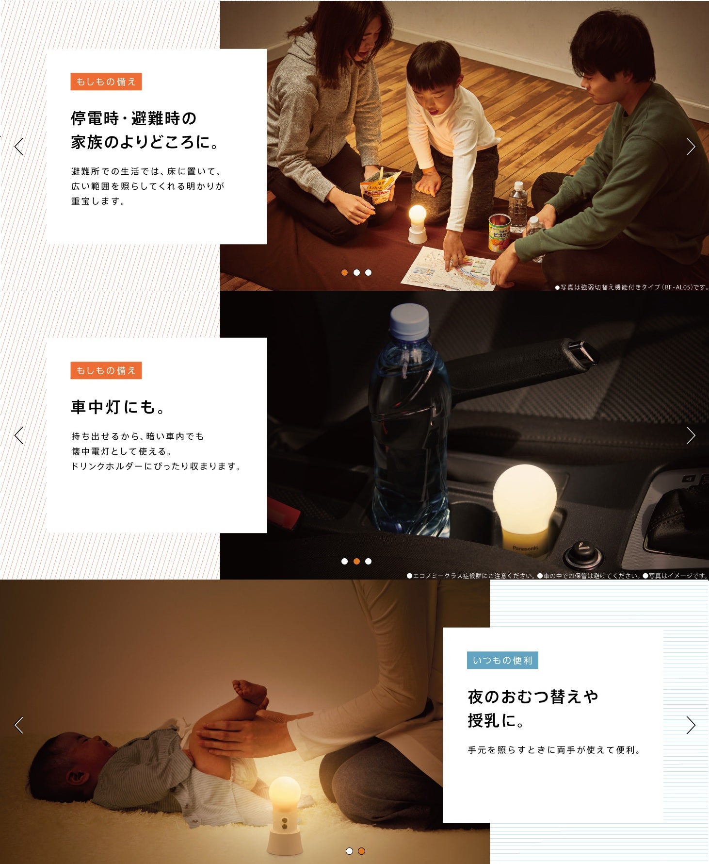 日本,Panasonic,國際牌,BF-AL06N,LED手電筒,電池式,緊急照明,防災,露營,手電筒,燈泡,床頭燈,可吊掛,颱風必備,停電,夜間照明,緊急,隨身攜帶,照明設備,手電筒,3種色溫,白燈,黃燈,6階亮度,可調光,不同亮度,災難,地震,更換尿布,小夜燈,BF-BM20P,BF-AL05N,BF-BL45M,BF-AF15P