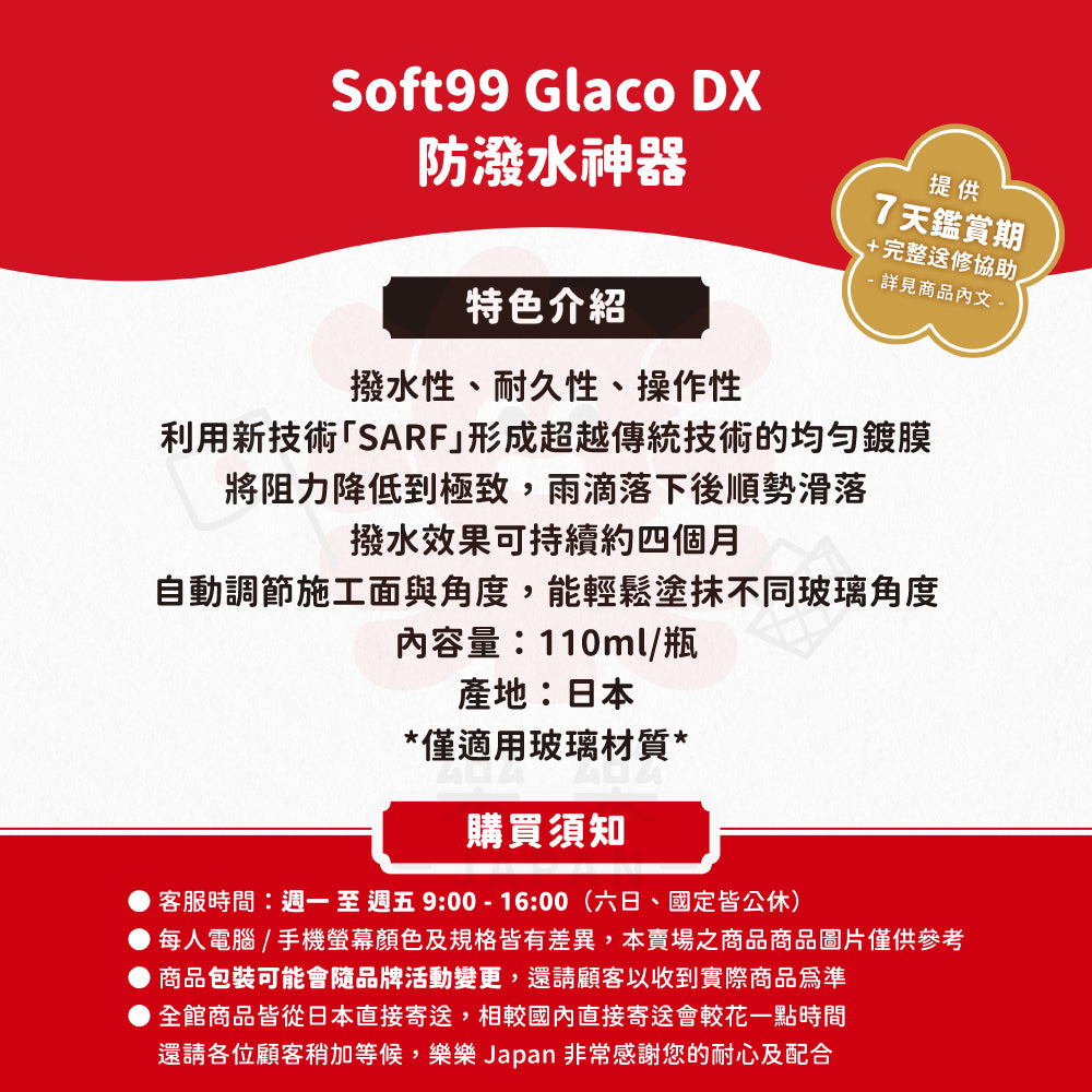 SOFT99,免雨刷,DXC336,玻璃鍍膜,撥水劑,撥雨劑,110ml,4月耐久,SARF技術,均勻鍍膜,3D刷頭,汽車玻璃,防水鍍膜,撥水效果,雨天駕駛,防水處理,玻璃保護,防護層,撥水性能,長效撥水,易用撥水劑,防水保養,汽車玻璃保護,防霧效果,汽車配件,車用玻璃清潔,鍍膜技術,汽車清潔,防水噴霧,車用鍍膜,水漬防護,雨水清除,撥水層,雨天安全,高效撥水,玻璃護理,防水噴劑,鍍膜噴劑,玻璃清潔,汽車鍍膜劑,高效鍍膜,防水玻璃,窗戶護理,雨滴去除,撥水保護,玻璃光滑,鍍膜保養,撥水清潔,玻璃防護膜,玻璃鍍膜液,撥水鍍膜,汽車保養,車窗護理,汽車防水,自動撥水,玻璃鍍膜噴霧,雨天視線,玻璃透明度,雨水滑落,玻璃護膜,玻璃保養產品,撥水效果持久,汽車清潔用品,高效玻璃清潔劑,雨天視線清晰,撥水玻璃清潔劑