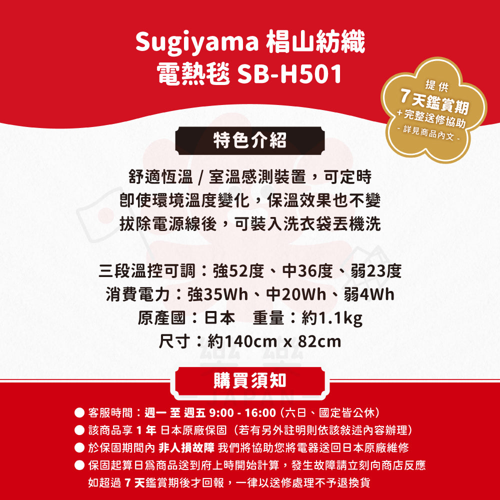 椙山紡織,SB-H501,電熱毯,電暖披肩,小扣,電毯,電暖毯,電氣毛毯,Sugiyama