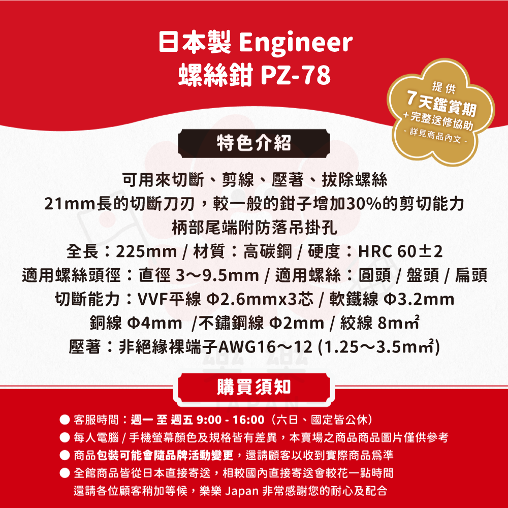 日本製,ENGINEER,省力電工螺絲鉗,PZ-78,暴龍鉗,超越K牌,偏蕊鋼絲鉗,鋼絲剪,老虎鉗,電工鉗,端子鉗