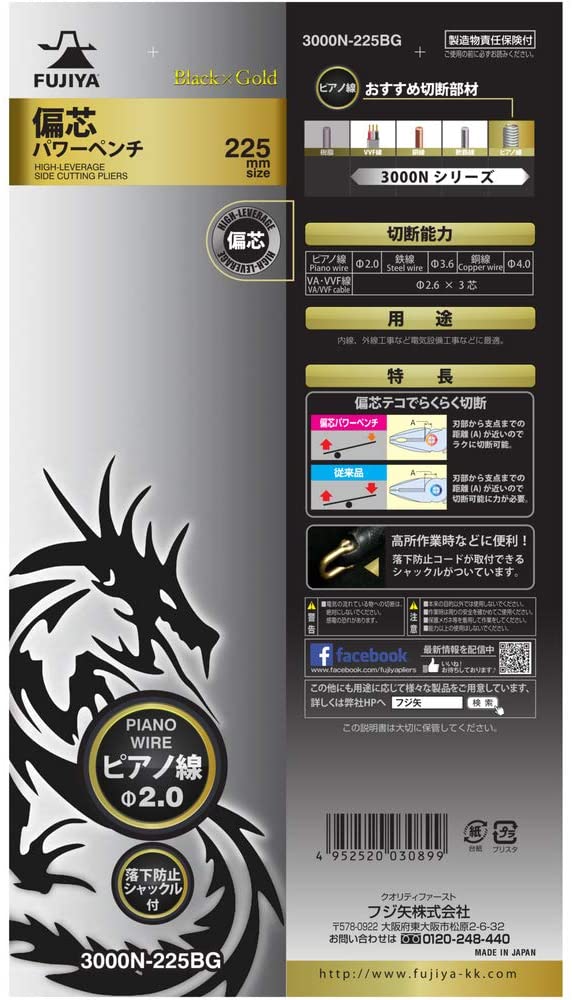 日本製,富士箭,FUJIYA,黑金系列,3000N-200BG,3000N-225BG,黑金特仕版,偏芯強力膠柄,耐用,質感,省力設計,輕量化設計,不易疲勞,輕鬆剪切,鋼絲鉗,剝線鉗,老虎鉗,長嘴鉗,斜口鉗,端子壓接鉗,壓線鉗,線鉗,剪線鉗,鋼剪鉗,鋼絲剪刀,鋼絲處理,切割能力,安全繩用吊環,修繕五金,修繕工具,電工,設備維修,空調,配管,修理,水電,高空作業,五金工具,維修工具,多功能工具,切割電線,切割鋼線,切割金屬線,切割銅線,剪斷螺絲,螺絲鉗,螺絲剪