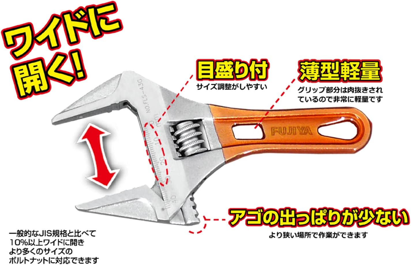 FUJIYA,富士箭,短版板手,活動板手,FLS-28G,FLS-32G,FLS-43G,FLS-53G,輕量,板手