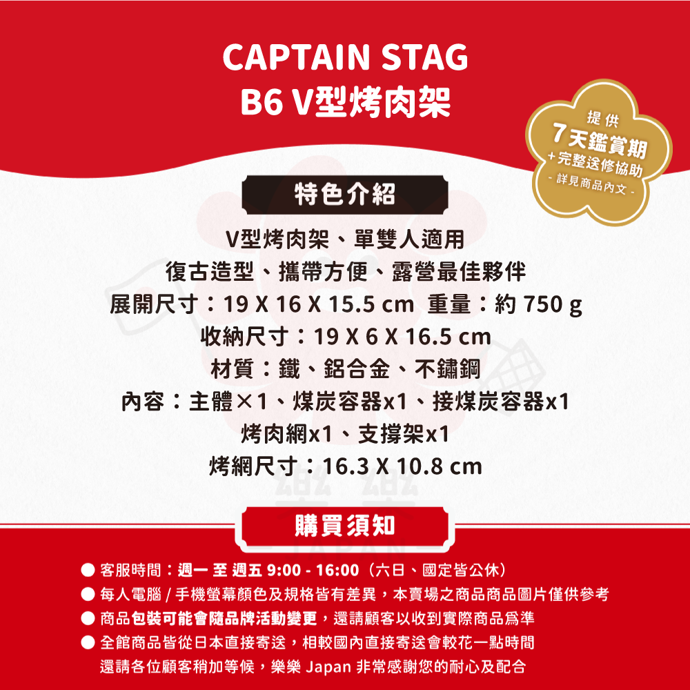 鹿牌,Captain,Stag,V型,B6,烤肉架,露營,桌上型,燒烤,野營,BBQ,烤肉,UG-78,UG-79,UG-80,UG-81
