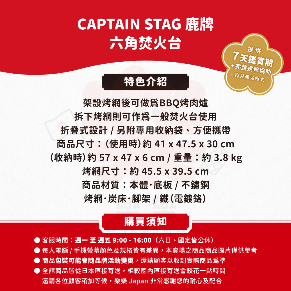 CAPTAIN,STAG,鹿牌,六角焚火台,M-6500,附收納袋,烤肉爐,烤肉架,BBQ,烤爐,M-6498