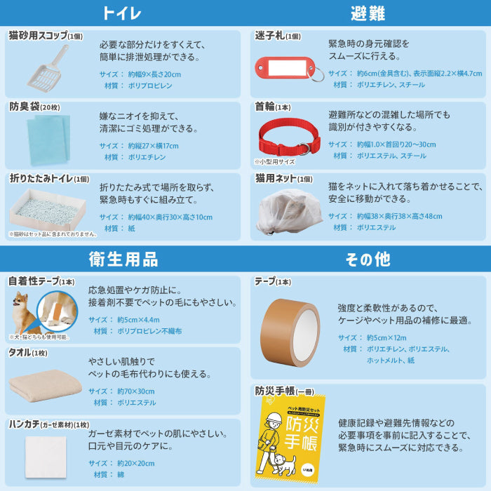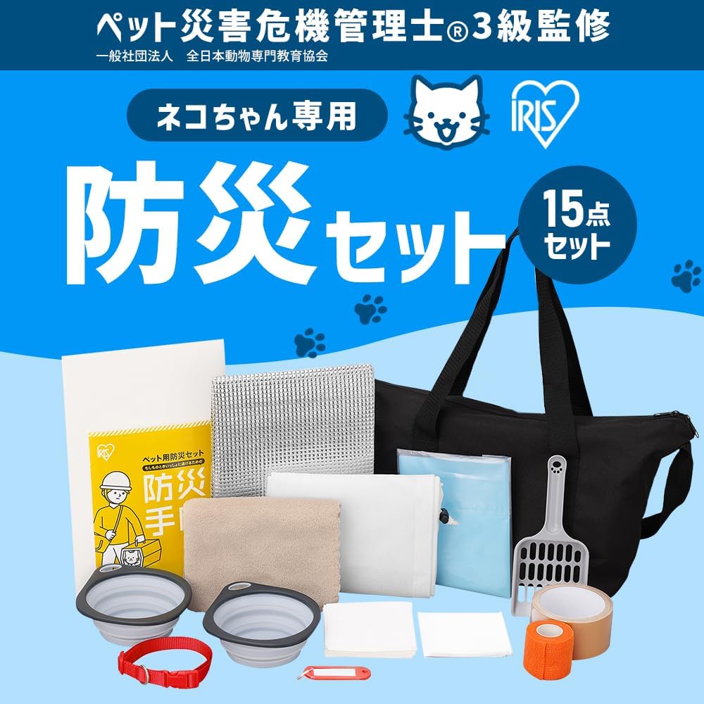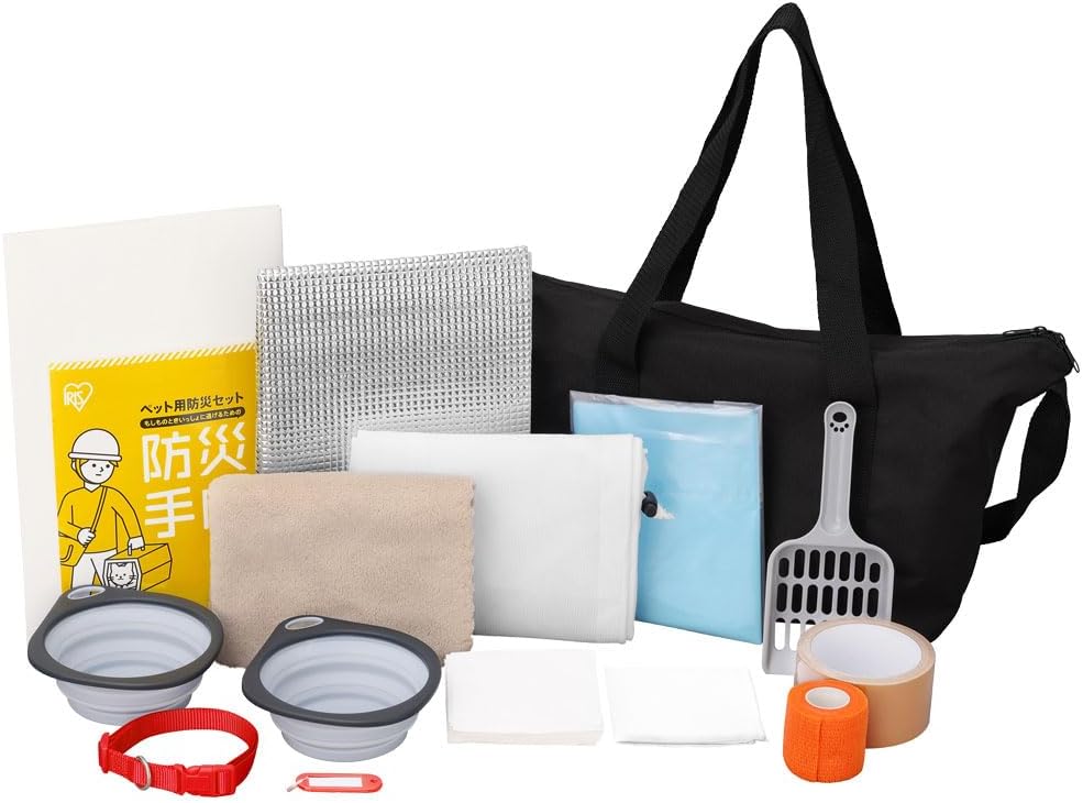 日本,IRIS,OHYAMA,愛麗思歐雅瑪,PBSN-15,PBSI-15,貓用,狗用,貓咪,狗狗,小貓,小狗,寵物,毛小孩,防災包,防災袋,防災用品,15件組,3way提袋,水碗,貓砂鏟,防臭袋,便便袋,便溺袋,摺疊貓砂盆,項圈,固定袋,固定網,固定膠帶,毛巾,手帕,紗布,封箱膠帶,防災手冊,吸水墊,尿布墊,摺疊廁所,牽繩,擦拭布,鋁箔,防寒,保暖,防災,天災,地震,颱風,小橘書,台灣全民安全指引,緊急救援,緊急避難,災害預防,生存包,生存工具