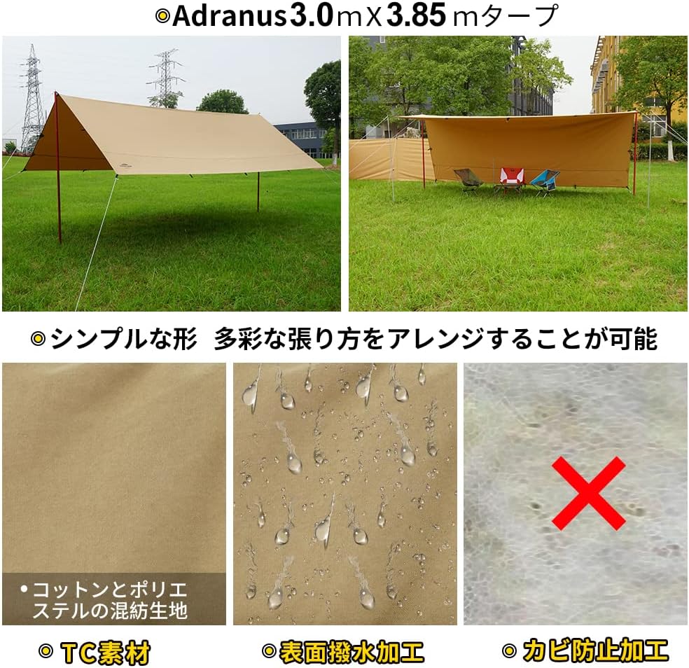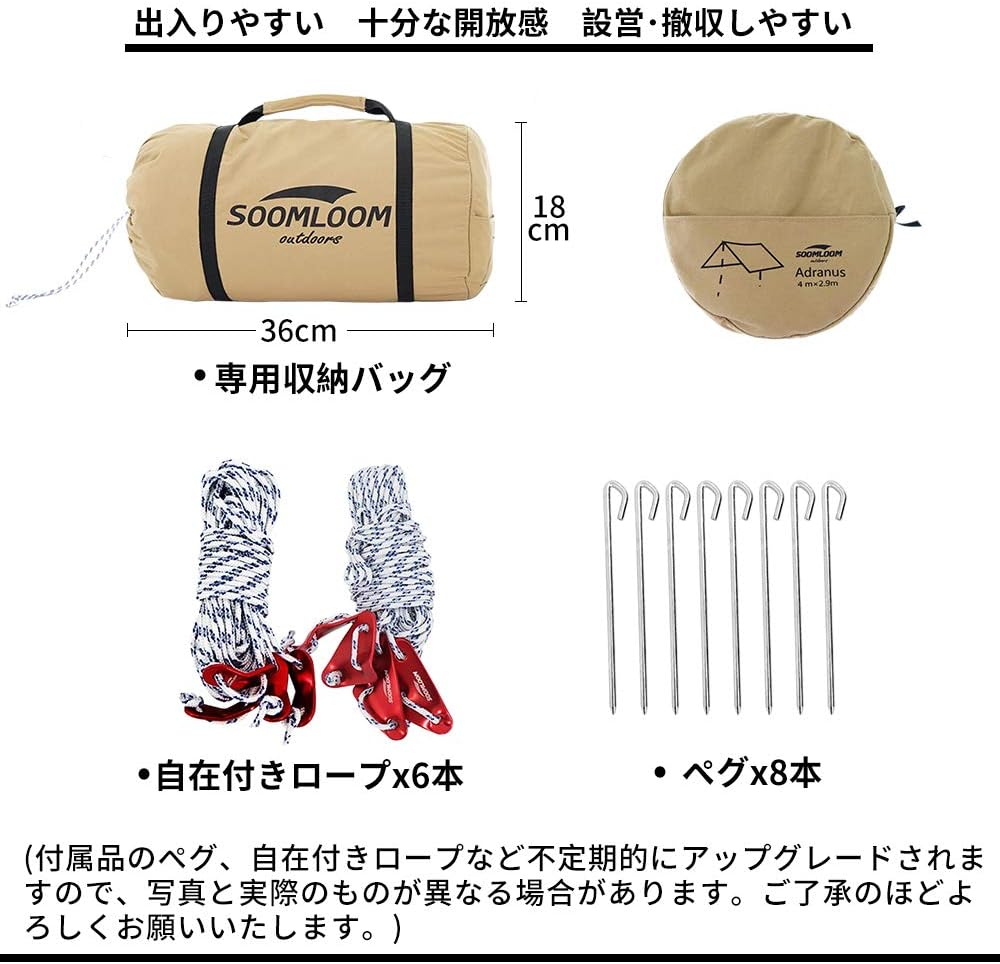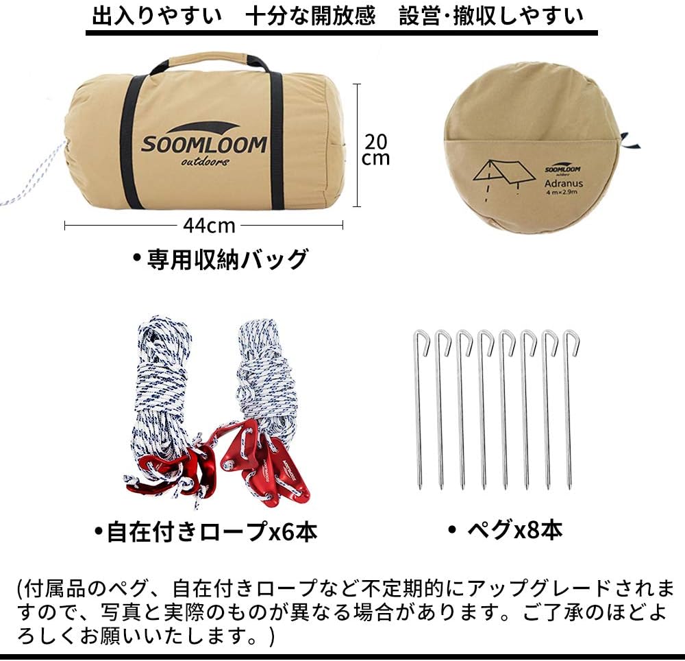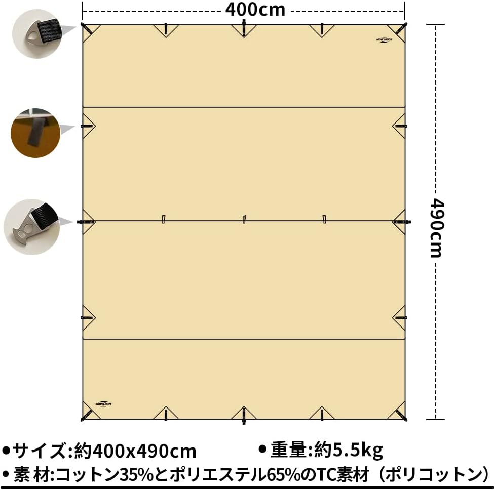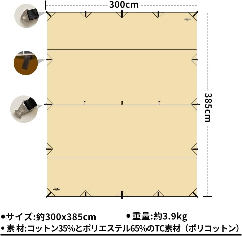 Soomloom,TC長方形,科技棉,天幕,沙色,露營,野營,3.0mx3.85m,4.0mx4.9m
