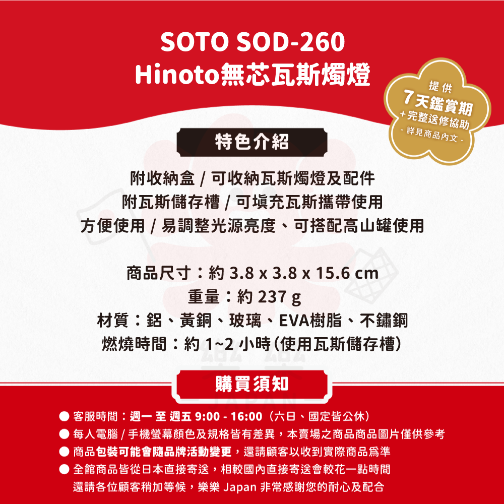 日本製,SOTO,Hinoto無芯瓦斯燭燈,SOD-260,露營燈,無芯燈,氣氛燈,專用腳架組,SOD-251,可參考
