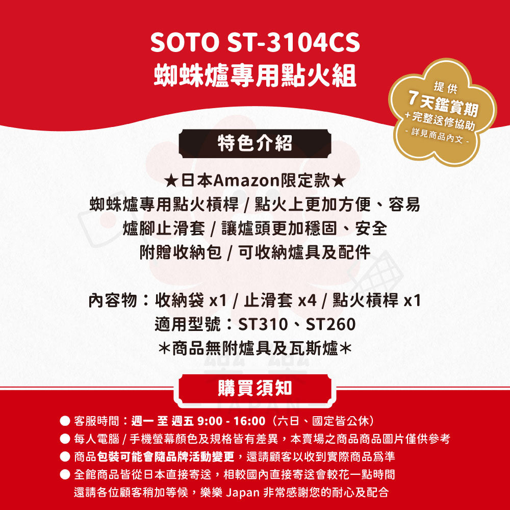 SOTO,ST-340,迷你蜘蛛爐,高山爐,卡式瓦斯爐,火爐,露營,登山,野炊,ST-310,ST-310MT,ST-3104CS,蜘蛛爐專用點火組,收納包,蜘蛛爐收納包,登山爐收納包,ST260,爐腳止滑套,點火槓桿,輕便型,戶外休閒爐,露營裝備,攜帶式瓦斯爐