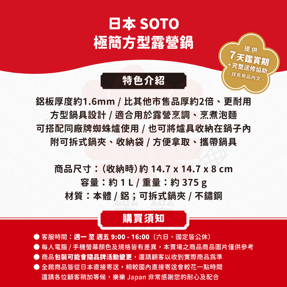 日本製,SOTO,極簡方型露營鍋,ST-3108,附收納袋,可拆式鍋夾,厚鋁煮飯神器,登山,露營,野炊,泡麵鍋,輕量登山鍋,野炊鍋具