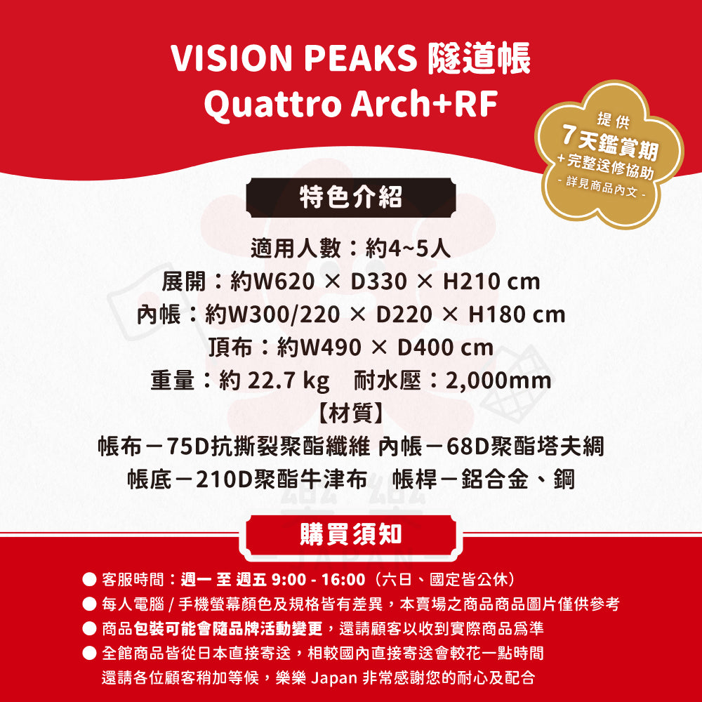VISIONPEAKS,隧道帳,Quattro,Arch+RF,VP160101K01,一房一廳,帳篷,露營,野營