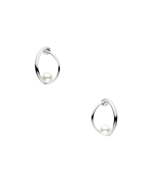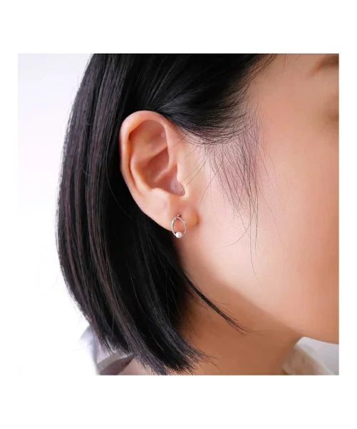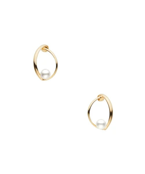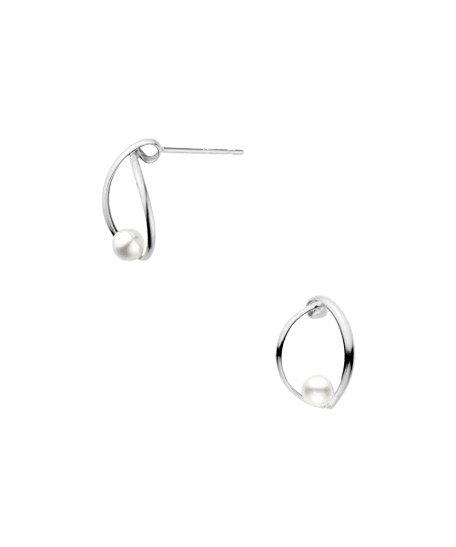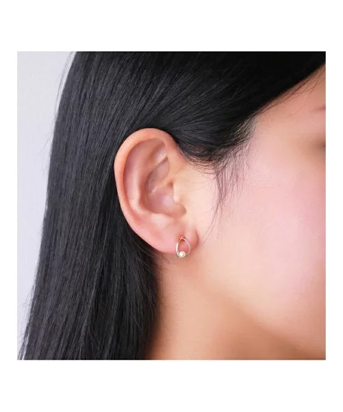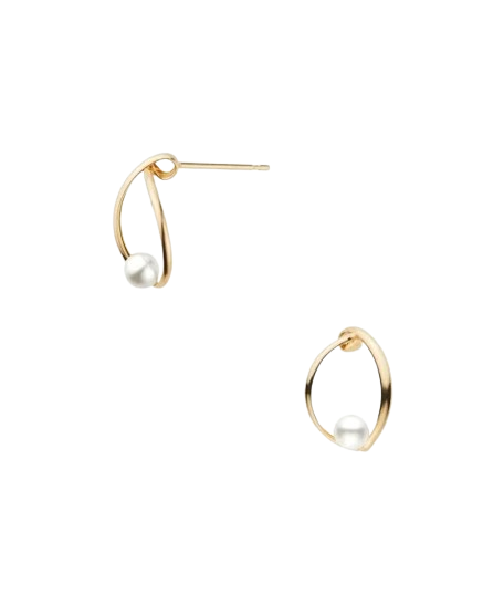以象徵葉子的白金線/K金條裝飾的淡水珍珠耳環設計。