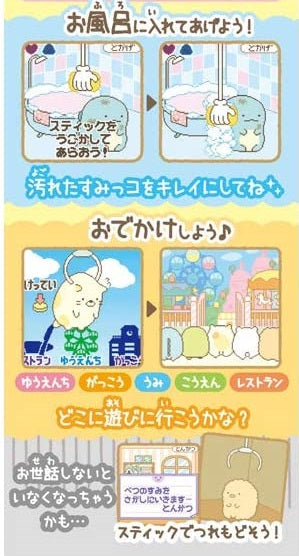 ■藉著互動棒就能達到角落生物的養成、餵食、打掃、洗澡,就連布置房間都能辦到。