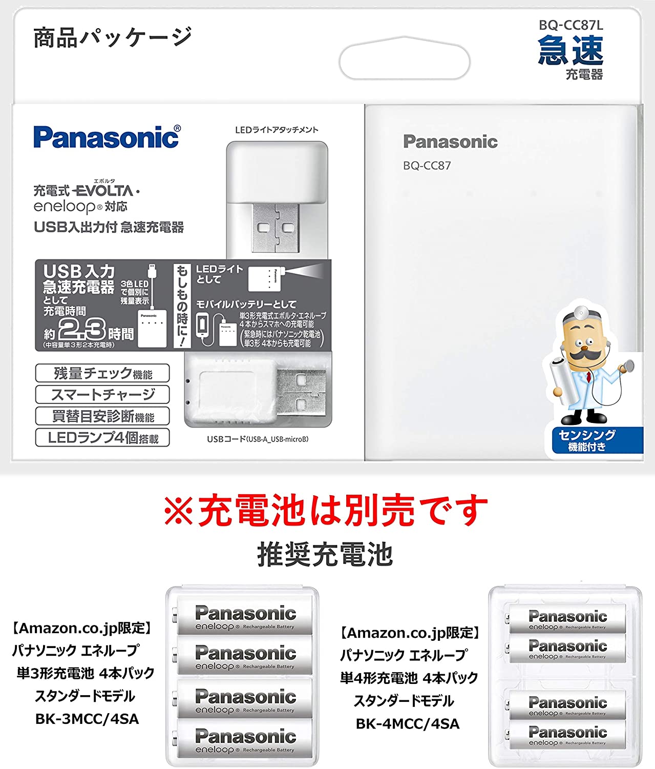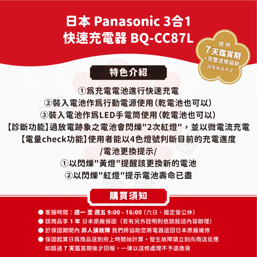 Panasonic,BQ-CC87L,三合一快充,急速充電器,充電電池,LED燈,行動電源,BQ-CC17,充電器,電池充電器