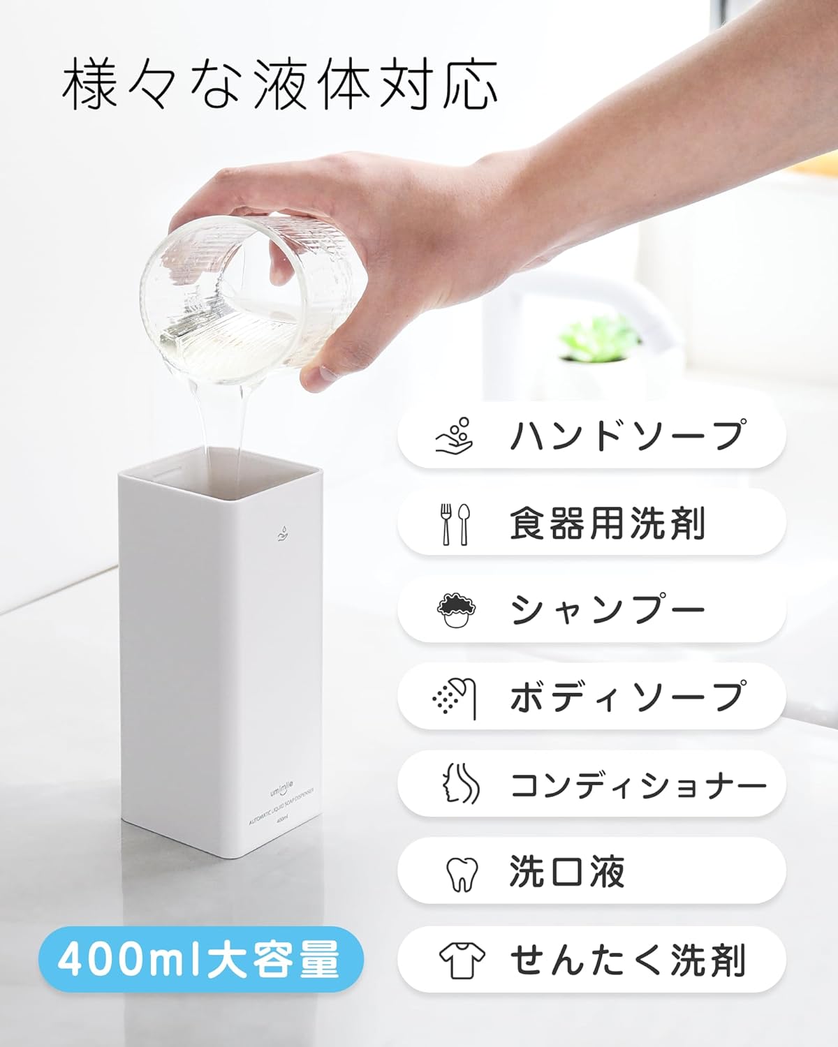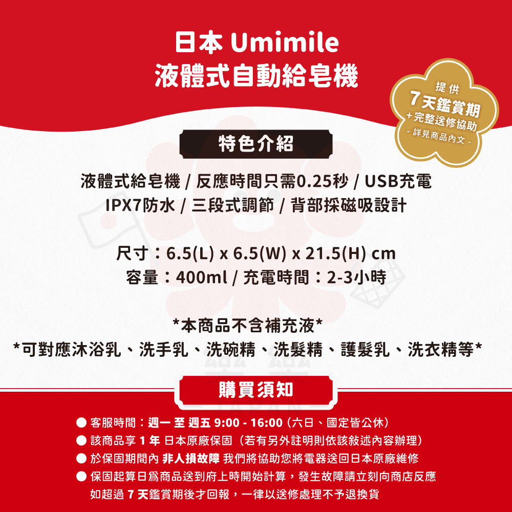 Umimile,自動給皂機,液體式,洗手機,洗髮精,洗碗精,洗衣精,漱口水,感應式,防水,充電式,三段式