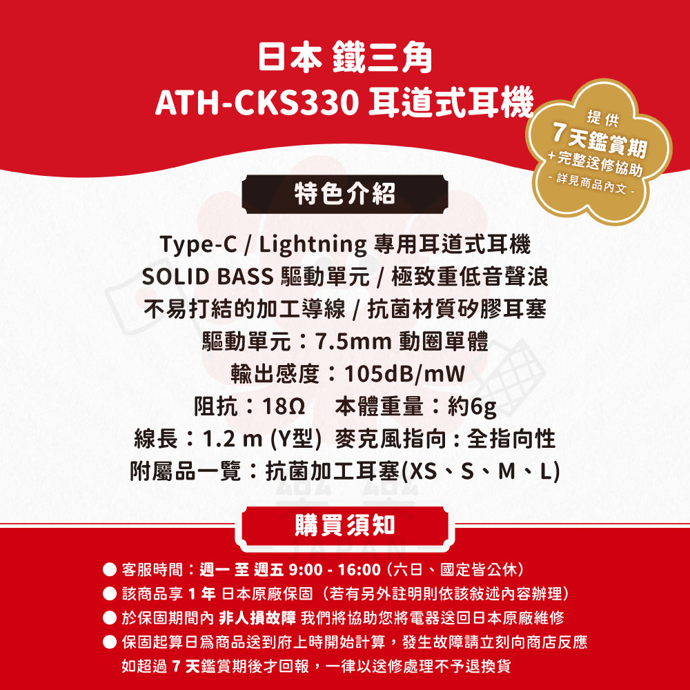 鐵三角,Audio-Technica,ATH-CKS330C,ATH-CKS330Li,入耳式耳機,耳道式耳機,輕量耳機,電腦耳機,監聽耳機,手機耳機,AI降噪,平板耳機,耳麥,耳機麥克風,立體聲耳機,耳塞式耳機,Lightning,Type-C,iphone耳機,solidbass,重低音