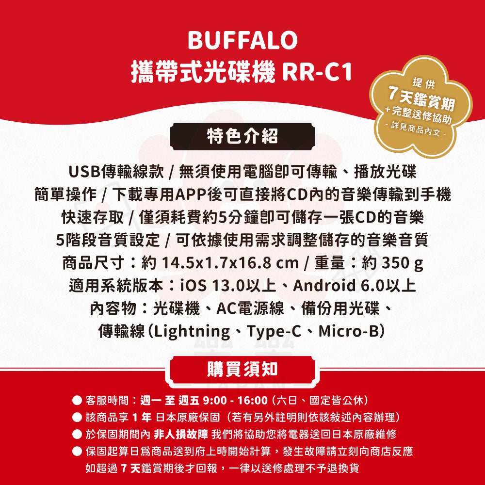 BUFFALO,攜帶式光碟機,USB傳輸線款,RR-C1,RR-C1-WH/N,RR-C1-BK/N,USB線,CD播放器,CD讀取,光碟機,光碟讀取機,光碟播放器,樂團,歌手