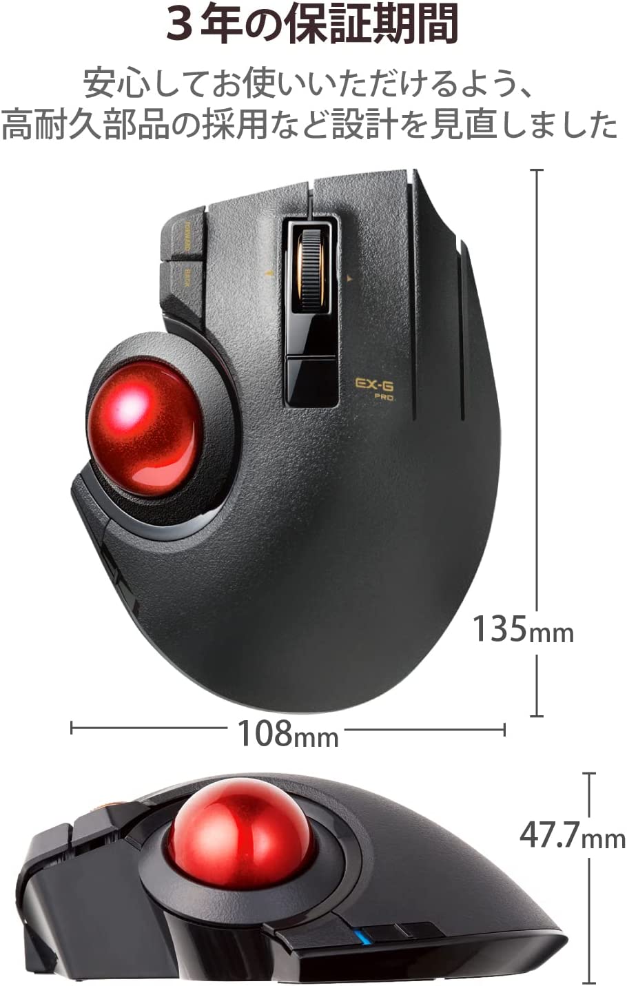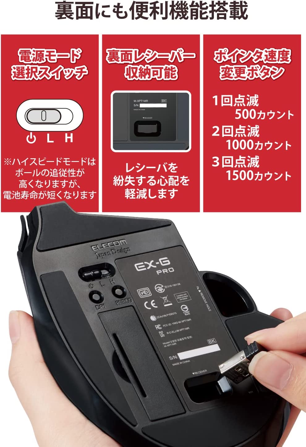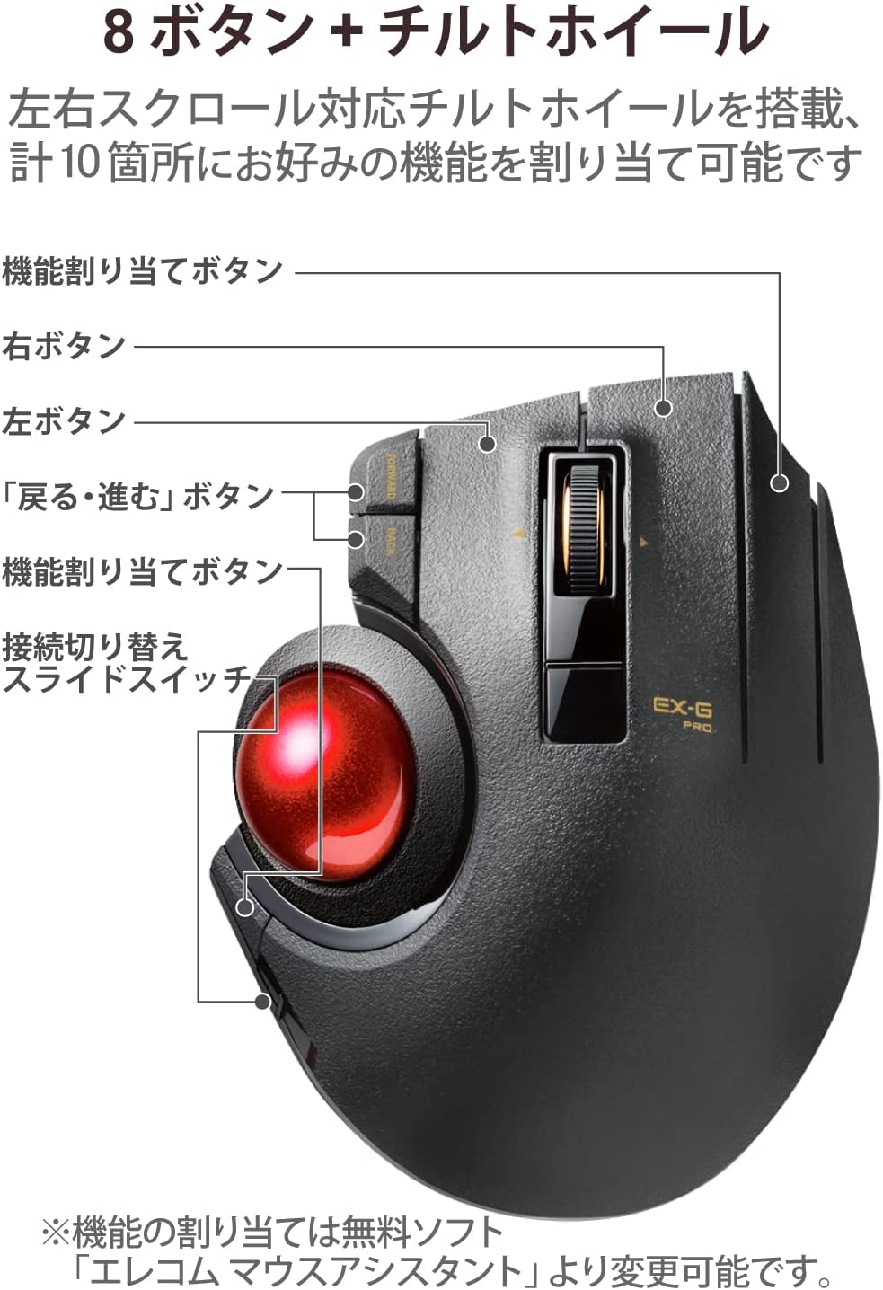 ELECOM,EX-G,PRO,M-XPT1MRXBK,無線軌跡球滑鼠,高規格,拇指操作,3種連接方式,腕隧道救星