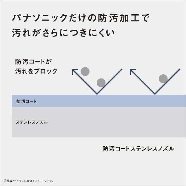 RSTK機型:①噴嘴蓋:Ag+抗菌加工 ②噴嘴:防污塗層加工