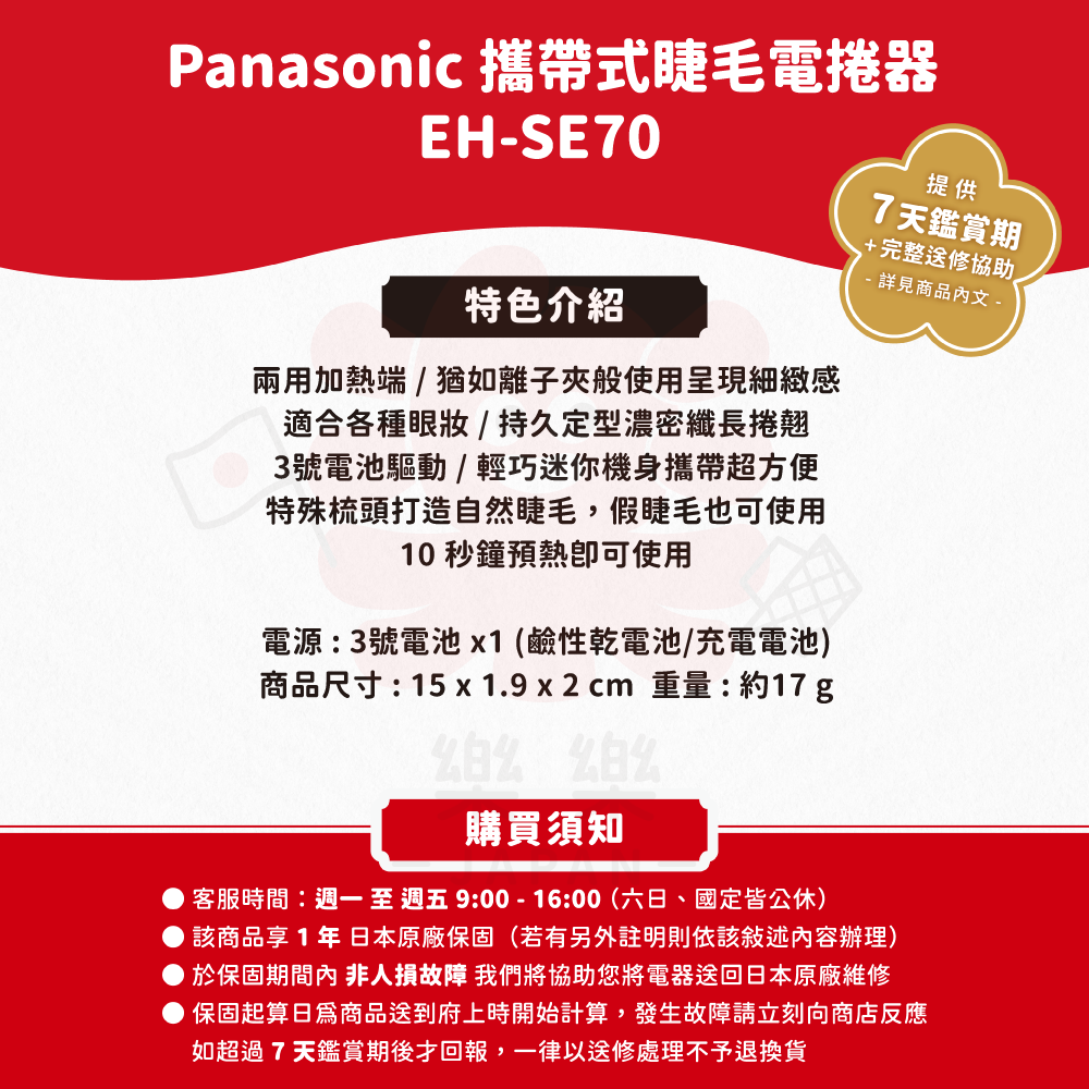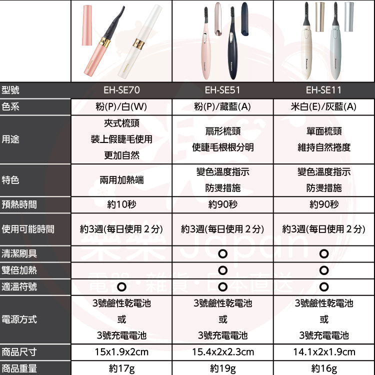 Panasonic,國際牌,EH-SE70,夾式燙睫毛器,假睫毛可用,快速預熱,電動睫毛夾,睫毛刷,睫毛燙,EHSE70