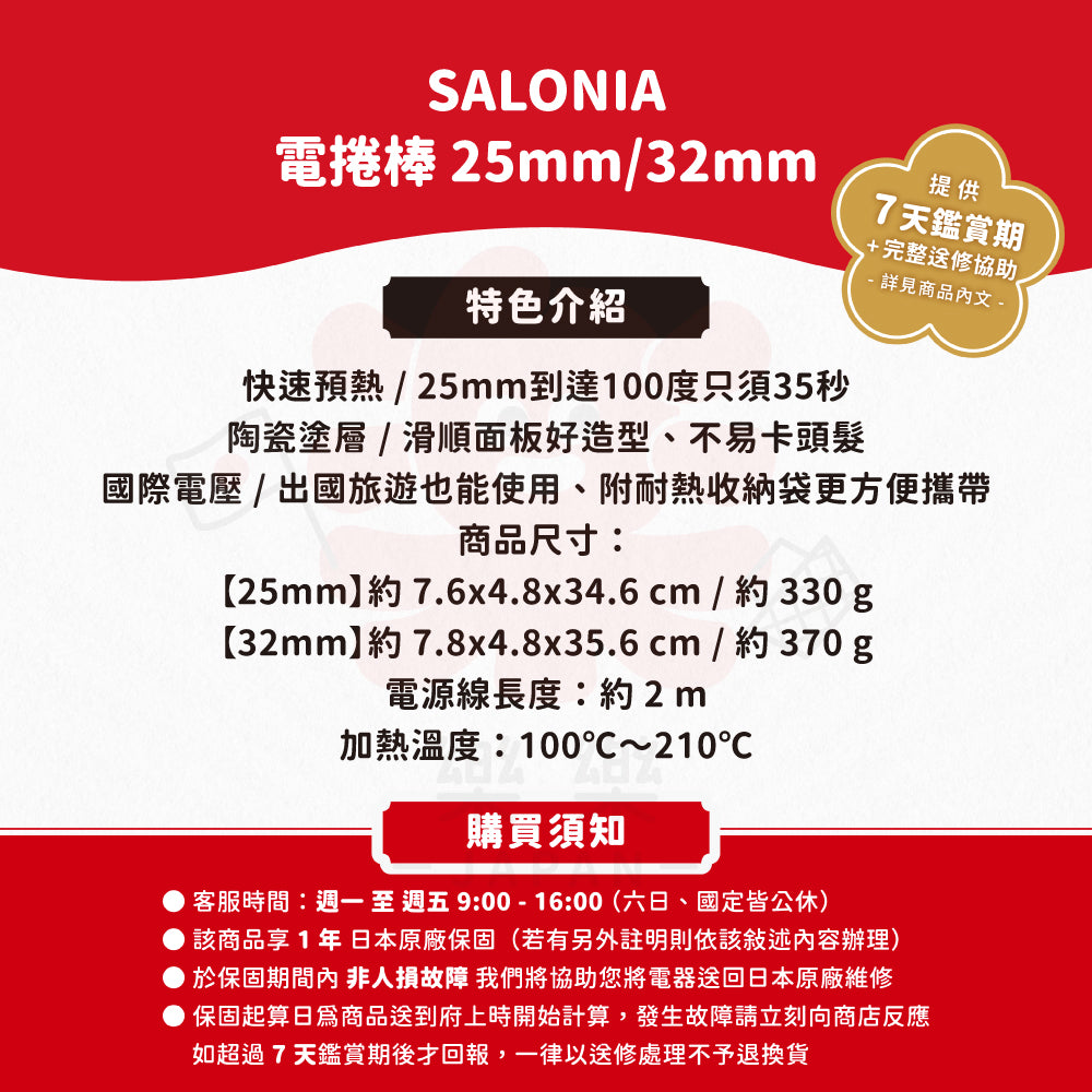 SALONIA,電捲棒,電棒,25mm,32mm,SL-008,SL-008AB,SL-008SW,捲髮器,負離子造型夾,美髮造型,陶瓷,捲髮棒,SL008,秀髮