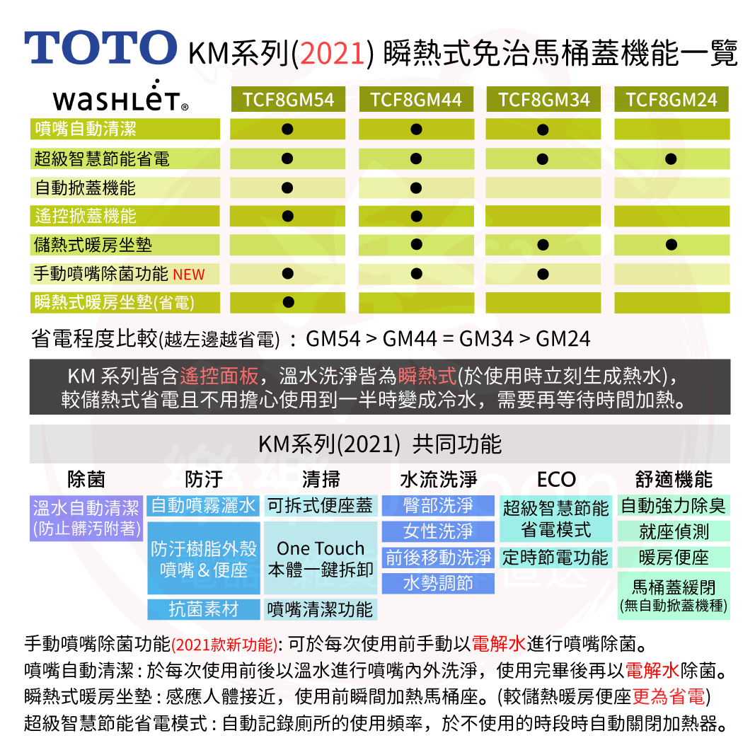 日本,TOTO,東陶,Washlet,KM系列,瞬熱式,免治馬桶座,免治馬桶,中高階款,TCF8GM24,TCF8GM34,TCF8GM44,TCF8GM54,TCF8GM23,TCF8GM33,TCF8GM43,TCF8GM53,智能馬桶座,全自動馬桶座,溫水洗淨馬桶座,多功能馬桶座,瞬熱式免治馬桶座,儲熱式,強力除臭,除臭,抗菌,無縫,無接縫設計,無線遙控,遙控器,遙控面板,智能感應,便座,暖房坐墊,暖座,婦女清洗,女性洗淨,臀部洗淨,智能省電,智能節電,自動清潔,噴嘴清潔,噴嘴除菌,電解除菌水,自動掀蓋,自動閉蓋,遙控掀蓋,遙控閉蓋,衛浴裝潢,免治馬桶座推薦,水溫調節,暖座溫度調節,洗淨強度調節3