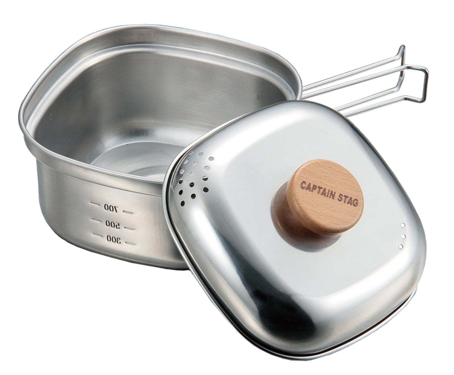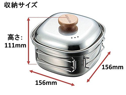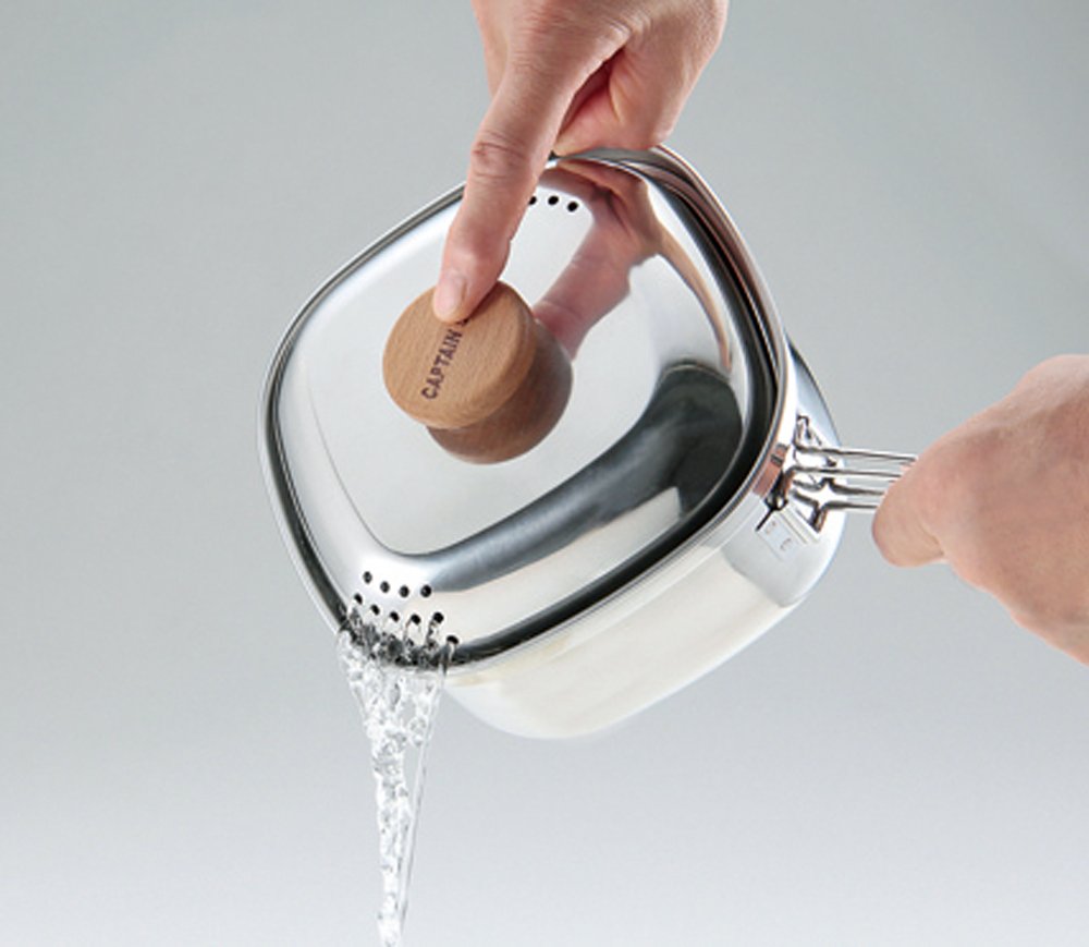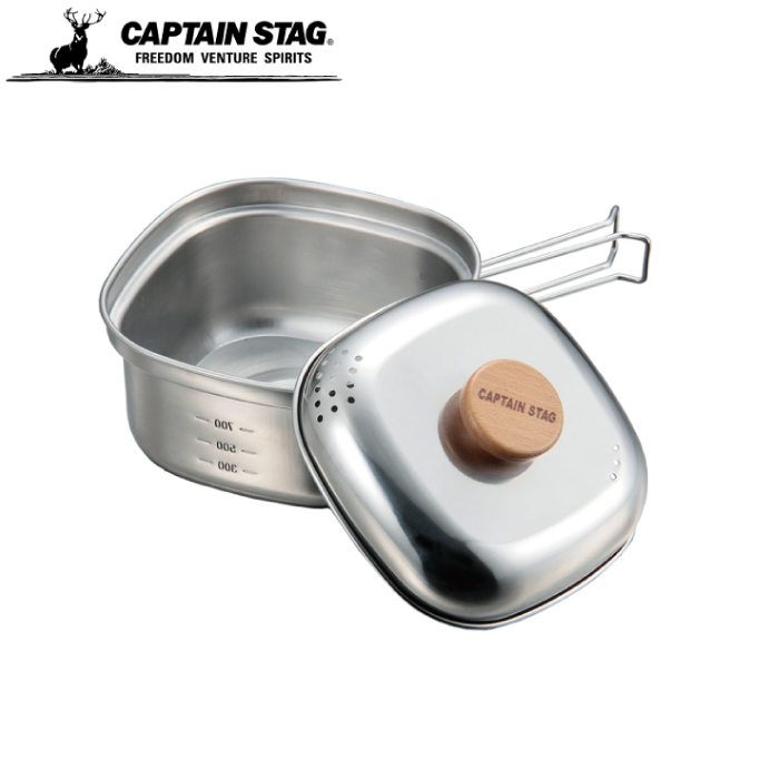日本製,CAPTAIN,STAG,鹿牌,UH-4202,方形不鏽鋼鍋,1.3L,湯鍋,瀝水泡麵鍋,燕三条,露營,野營