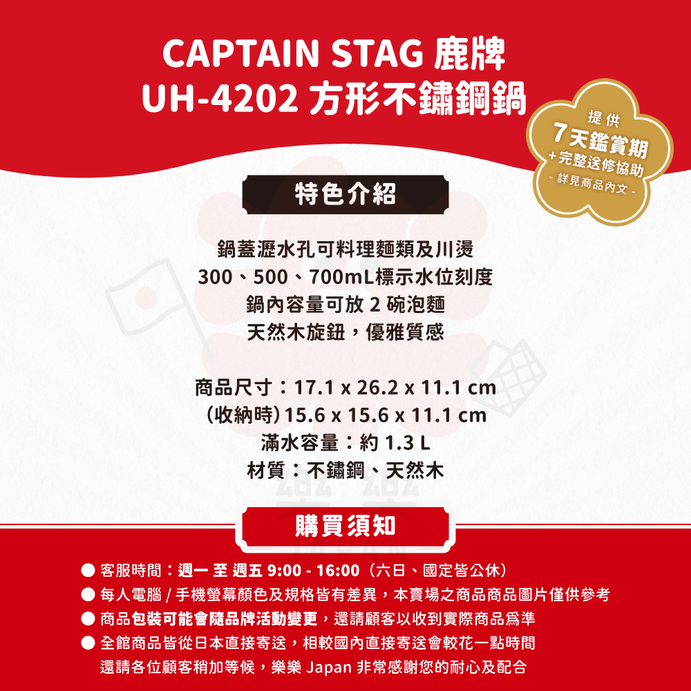 ※詳細說明請見樂樂Japan 購物保障・保固須知
