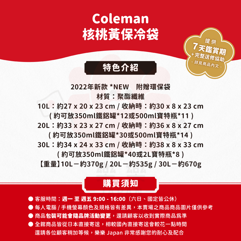 日本,Coleman,10L,20L,30L,核桃黃保冷袋,附環保袋,可折疊,保溫保冰袋.野餐,露營,保溫袋,飲料袋